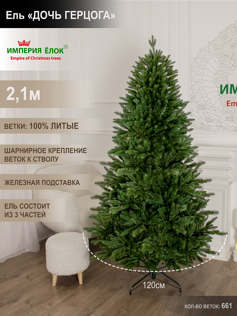 Ель искусственная Империя Елок "Ель Дочь герцога литая", 2,1 м